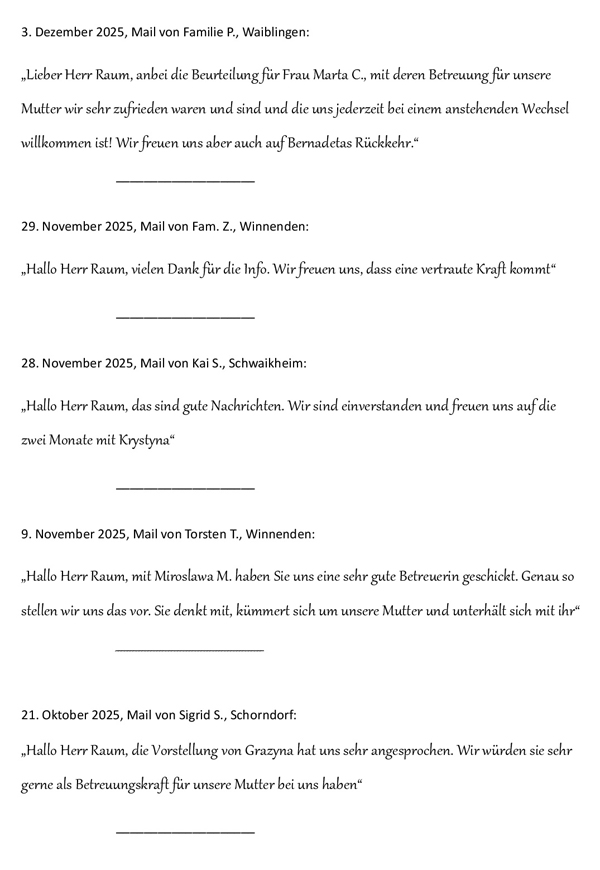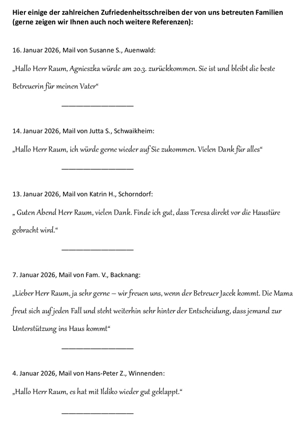 Kundenzufriedenheit - Seniorenbetreuung 24 Stunden Betreuung Haushaltshilfe Seniorenservice
