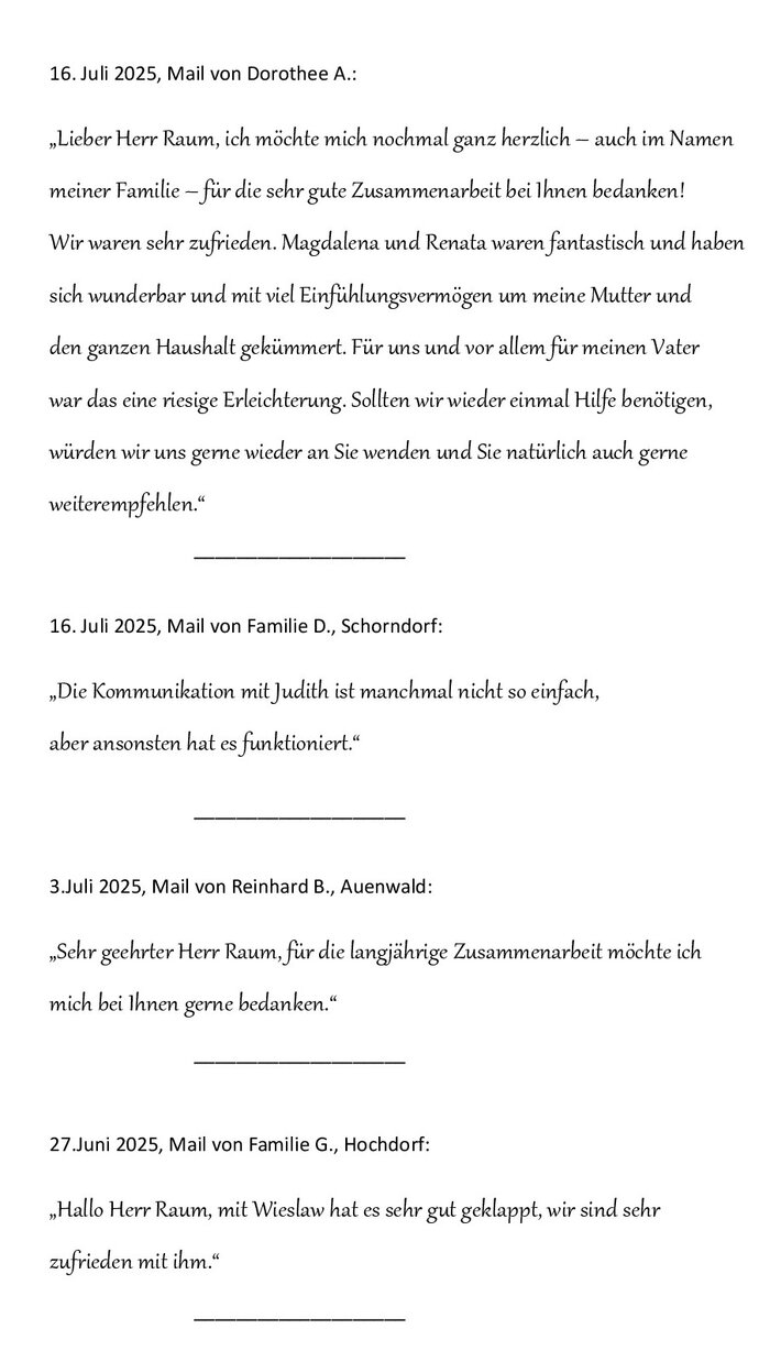 Auch dafür nochmals ein herzliches Dankeschön an Sie, die Agentur in Polen und allen Pflegekräften!