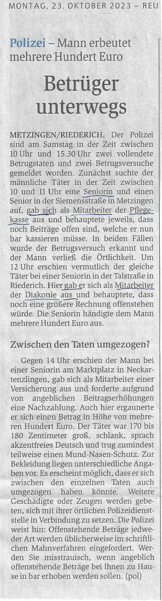 Bericht im Wochenblatt für Backnang und Umgebung vom 27. Januar 2022