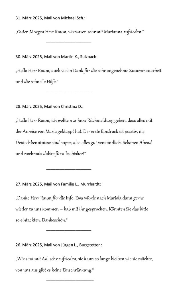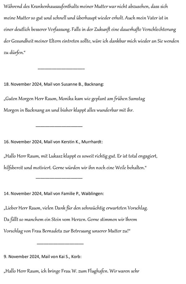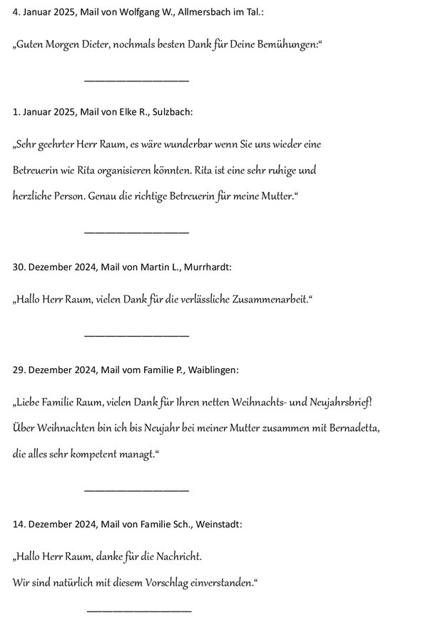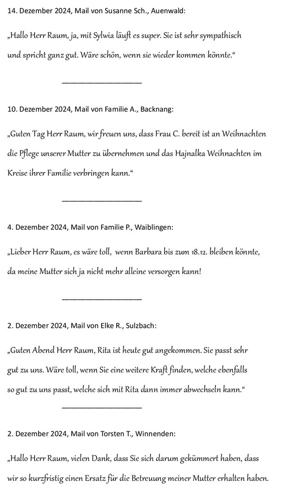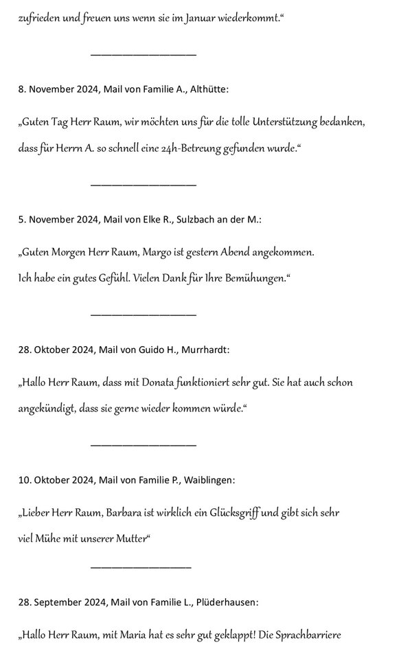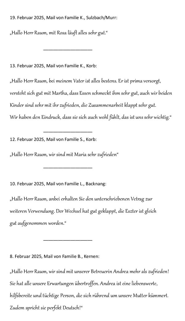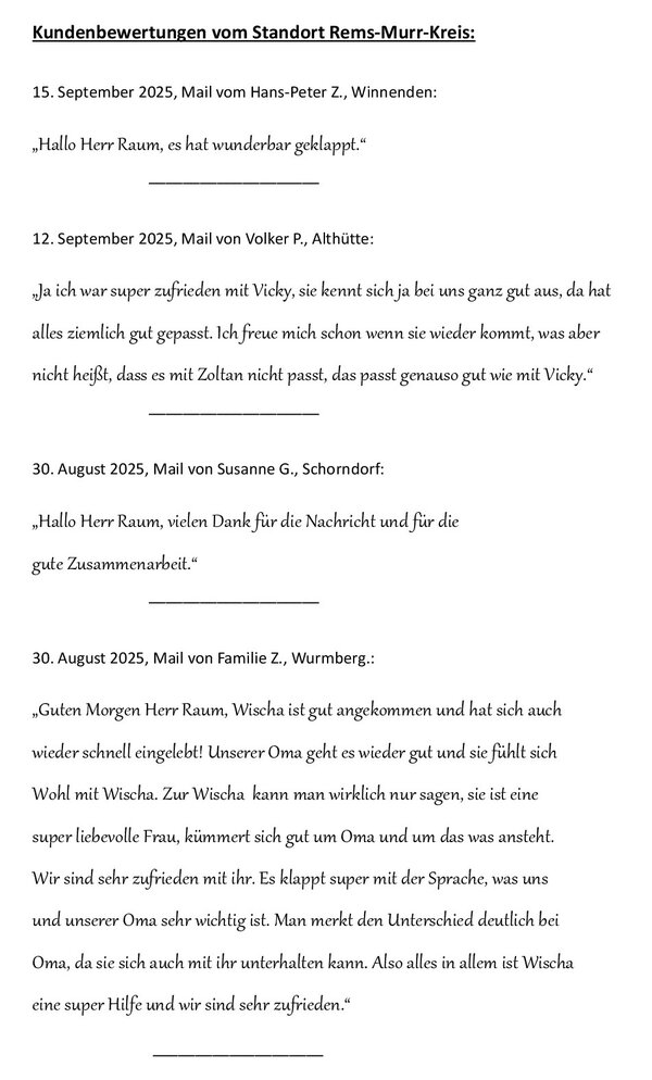 Kundenzufriedenheit - Seniorenbetreuung 24 Stunden Betreuung Haushaltshilfe Seniorenservice